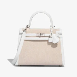 Artisan-Grade Hermès Dupes Kelly 25 Swift/Toile New White/Ecru/Beige PHW – Replica Handbags