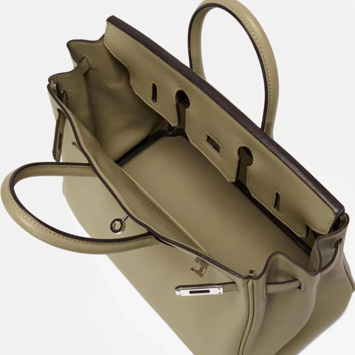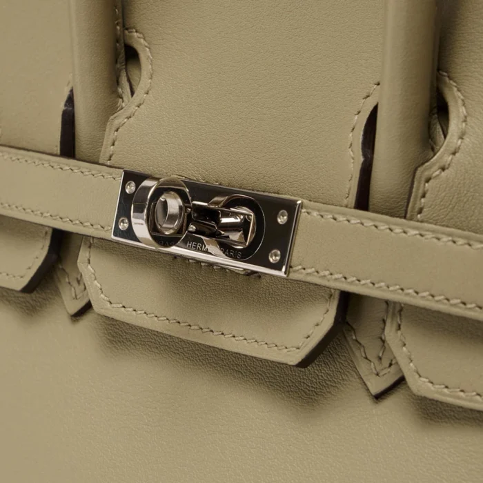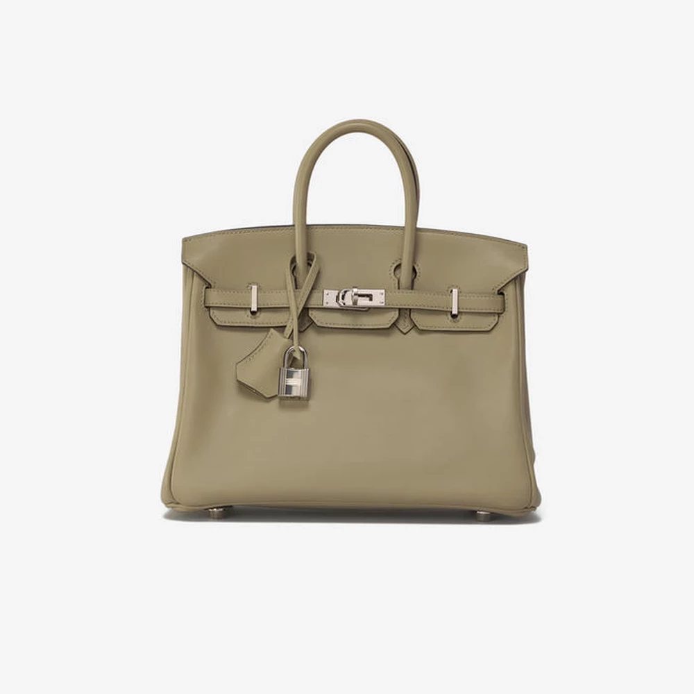 This Hermès Artisan-Grade Birkin 25 features Swift Sauge leather for a soft and sophisticated sage green in a petite size with palladium hardware. Palladium hardware provides a modern and sleek finish. Perfectly sized to carry your phone, wallet, and more. Swift leather is smooth and shows subtle color variations beautifully. Carry it by the top handles or on your arm for a chic and subtle touch of color. Ideal for evenings out and adding a touch of refined elegance.