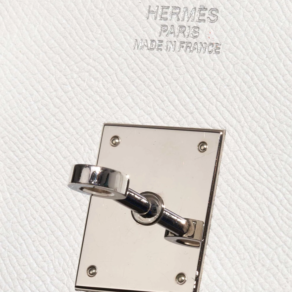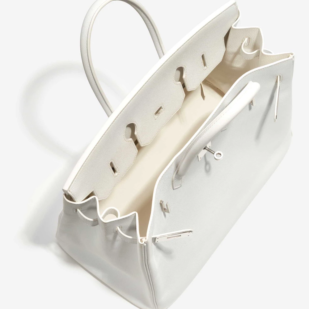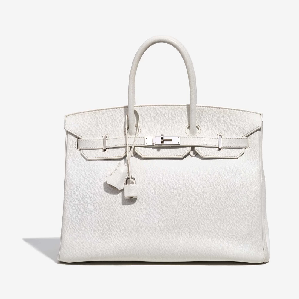 This Hermès Artisan-Grade Birkin 35 features Epsom Blanc leather for a pristine and elegant white in a larger size with palladium hardware. Palladium hardware provides a modern and sleek finish. Very spacious, ideal for carrying more essentials. Epsom leather is structured and resists scratches, maintaining its shape. Carry it by the top handles or on your arm for a chic and timeless statement. Ideal for work, travel, and everyday elegance.