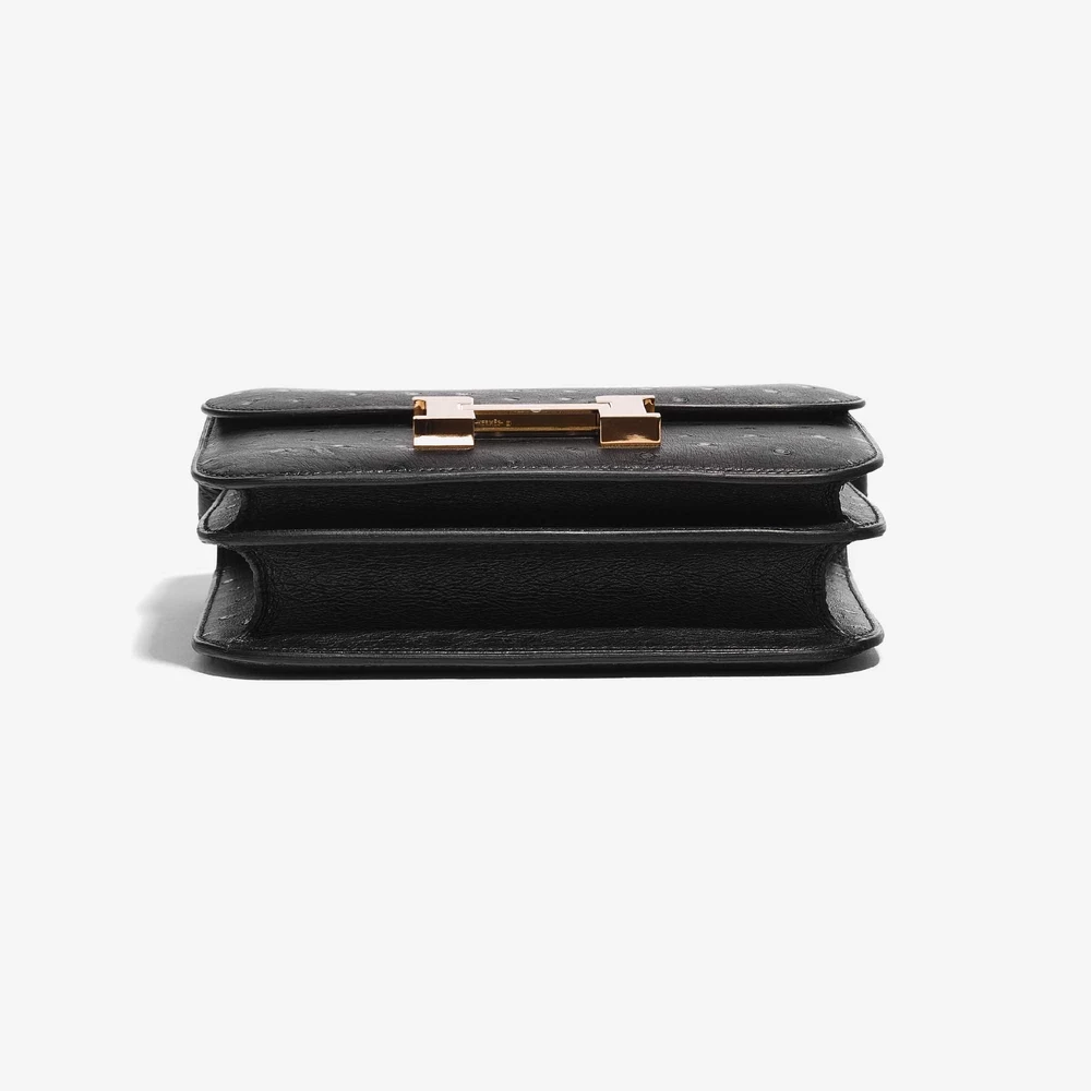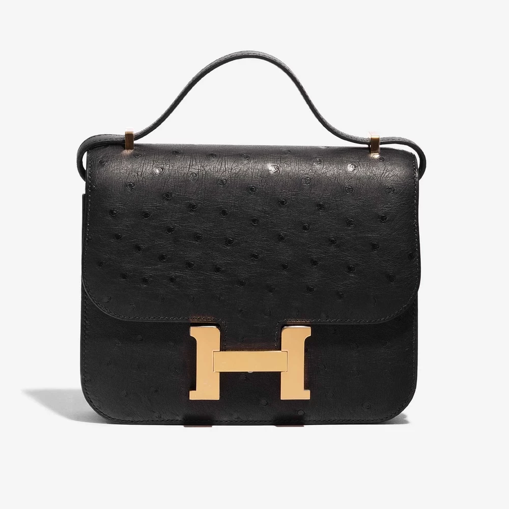 This Hermès Artisan-Grade Hermès Constance 18 features luxurious Ostrich Black leather for a timeless and elegant exotic skin in a compact size with a single flap and gold hardware. Gold hardware adds a warm and classic touch. Perfectly sized to carry your phone, wallet, and more. Ostrich leather is known for its distinctive quill pattern. Wear it over the shoulder or crossbody for a chic and opulent statement. Ideal for evenings out and special occasions.