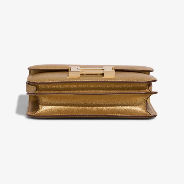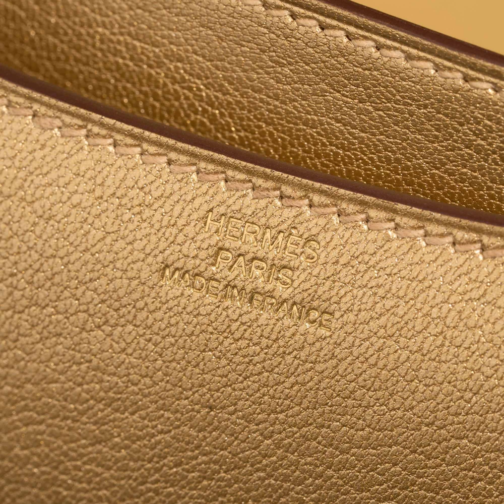 This Hermès Artisan-Grade Dupes Constance 18 features Chevre Mysore Dore leather for a rich and warm golden tan. Gold hardware adds a warm and classic touch. Perfectly sized to carry your phone, wallet, and more. Chevre Mysore leather is lightweight and has a refined texture. Wear it over the shoulder or crossbody for a chic and elegant touch of warm color. Ideal for adding a touch of subtle luxury.