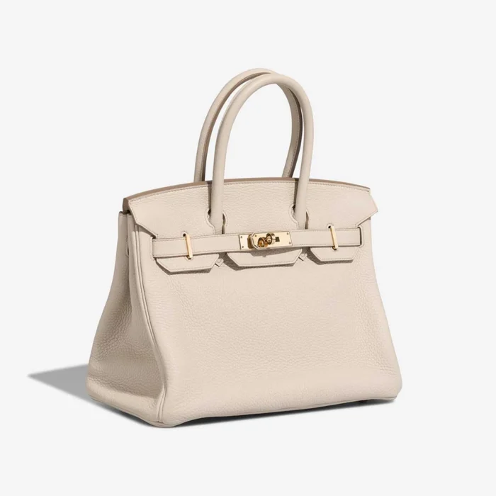 This Hermès Artisan-Grade Dupes Birkin 30 features Togo Beton leather for a sophisticated and versatile light gray with rose gold hardware. Rose gold hardware adds a touch of modern warmth. Spacious enough for daily must-haves like a tablet and cosmetics. Togo leather is durable and has a lovely, natural grain. Carry it by the top handles or on your arm for a chic and understated elegance with a modern touch. Ideal for everyday elegance.