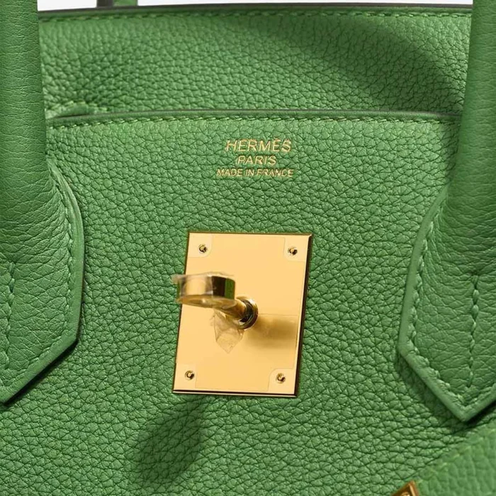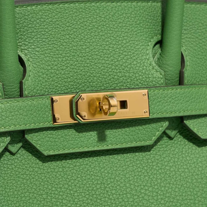 This Hermès Artisan-Grade Dupes Birkin 30 features Togo Vert Yucca leather for a unique and sophisticated muted green. Gold hardware enhances the warmth and classic appeal. Spacious enough for daily must-haves like a tablet and cosmetics. Togo leather is durable and has a lovely, natural grain. Carry it by the top handles or on your arm for a chic and understated elegance with a touch of subtle color. Ideal for adding a refined touch.