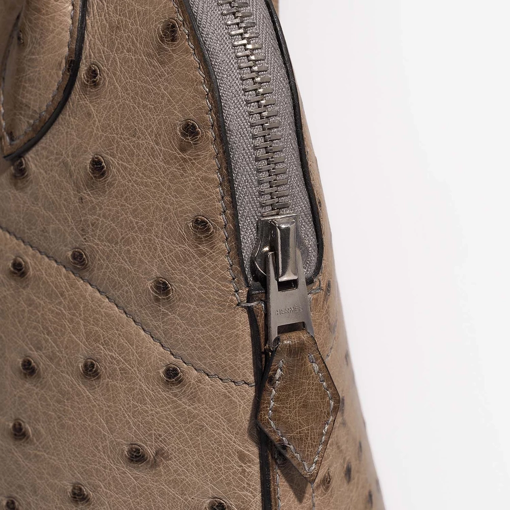 This Hermès Artisan-Grade Dupes Bolide 27 features luxurious Ostrich Gris Tourterelle leather for a rare and elegant dove gray exotic skin in a compact and rounded style. Palladium hardware provides a modern and sleek finish. Perfectly sized to carry your phone, wallet, and more. Ostrich leather is durable and has a distinctive patterned look. Carry it by the top handles or with the shoulder strap for a chic and sophisticated touch. Ideal for everyday elegance.
