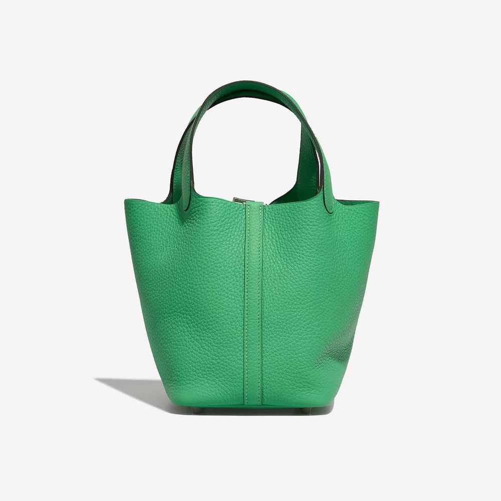 This Hermès Artisan-Grade Dupes Picotin 18 features Taurillon Clemence Vert Comics leather for a bright and playful comic book green. Palladium hardware provides a modern and sleek accent. Perfectly sized to carry your phone, wallet, and more. Taurillon Clemence leather is soft and relaxed, easy to carry. Carry it by the top handles for an effortless, casual style with a unique and cheerful pop of color. Ideal for adding a fun statement.