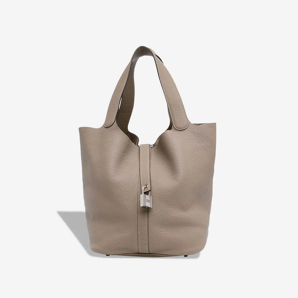 This Hermès Artisan-Grade Dupes Picotin 26 features Clemence Gris Tourterelle leather for a soft and elegant light gray in a slightly larger size. Palladium hardware provides a modern and sleek finish. Sized to hold more than the smaller Picotins, suitable for daily essentials. Clemence leather is soft and relaxed, easy to carry. Carry it by the top handles for an effortless, casual style with added space. Ideal for everyday use.