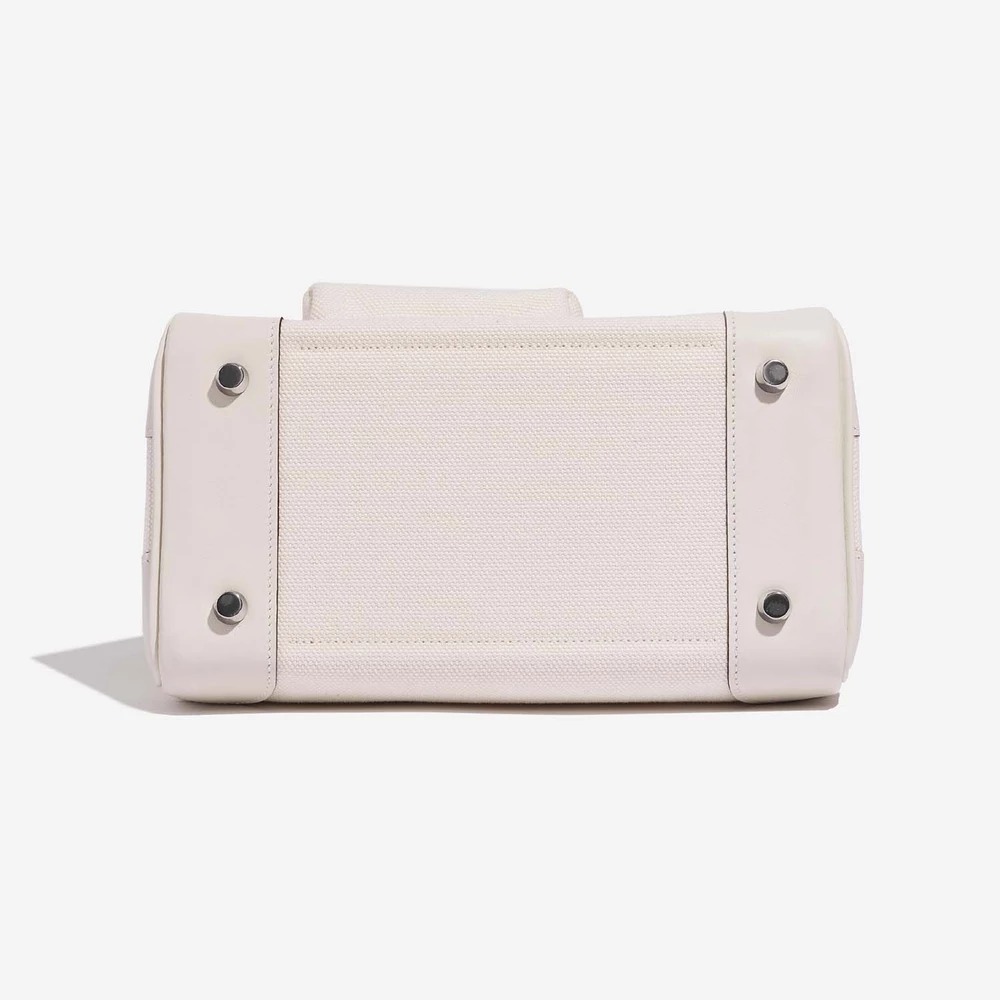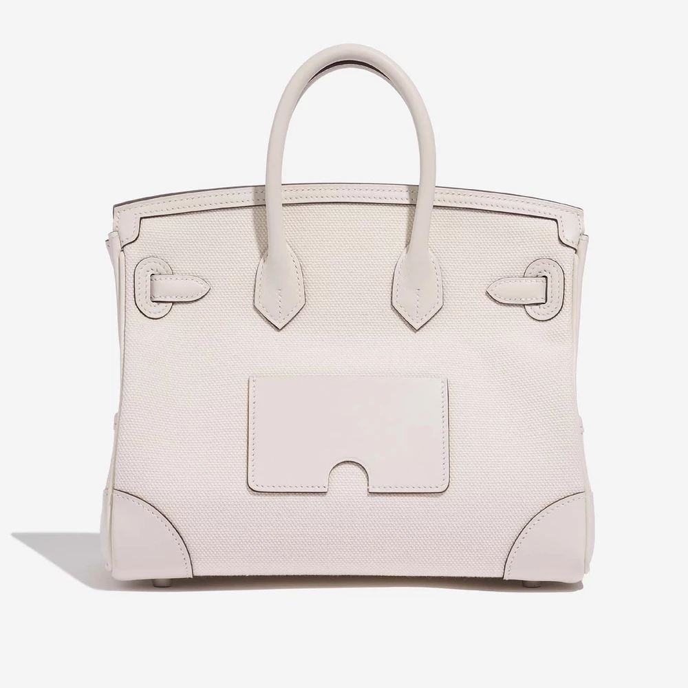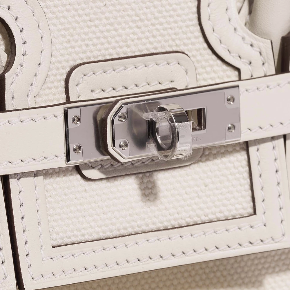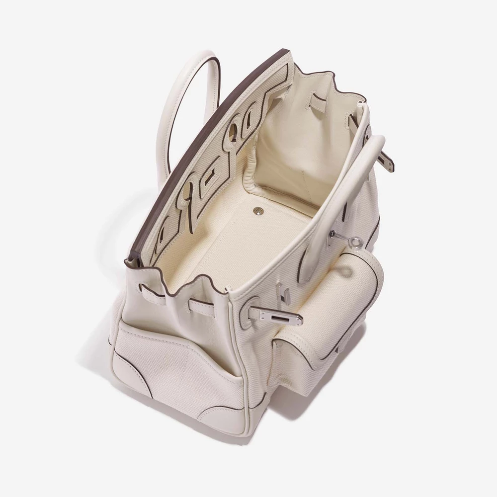 This Hermès Artisan-Grade Birkin Cargo 25 features a stylish combination of Toile and Swift leather in a sophisticated Nata (chalk white) with functional cargo pockets and palladium hardware. Palladium hardware provides a modern and sleek finish. Perfectly sized to carry your phone, wallet, and more. Toile is durable, while Swift leather adds a smooth contrast, and the cargo pockets offer a practical and stylish detail. Carry it by the top handles or on your arm for a chic and casual style with a touch of utilitarian flair. Ideal for everyday use.