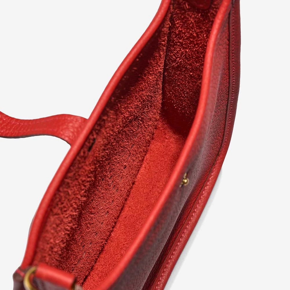 This Hermès Artisan-Grade Dupes Evelyne 16 features Taurillon Clemence leather in a vibrant two-tone design of Rouge Vermillon (bright vermillion red) and Rouge Vif (bright red) with gold hardware. Gold hardware adds a warm and classic touch. Perfectly sized to carry your phone, wallet, and more. Taurillon Clemence leather is soft and durable for everyday use. Wear it across your body for a hands-free and stylish way to carry it. Ideal for casual outings and adding a bold and playful touch.
