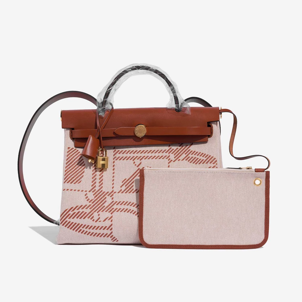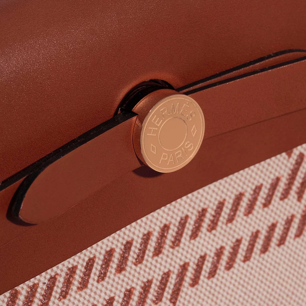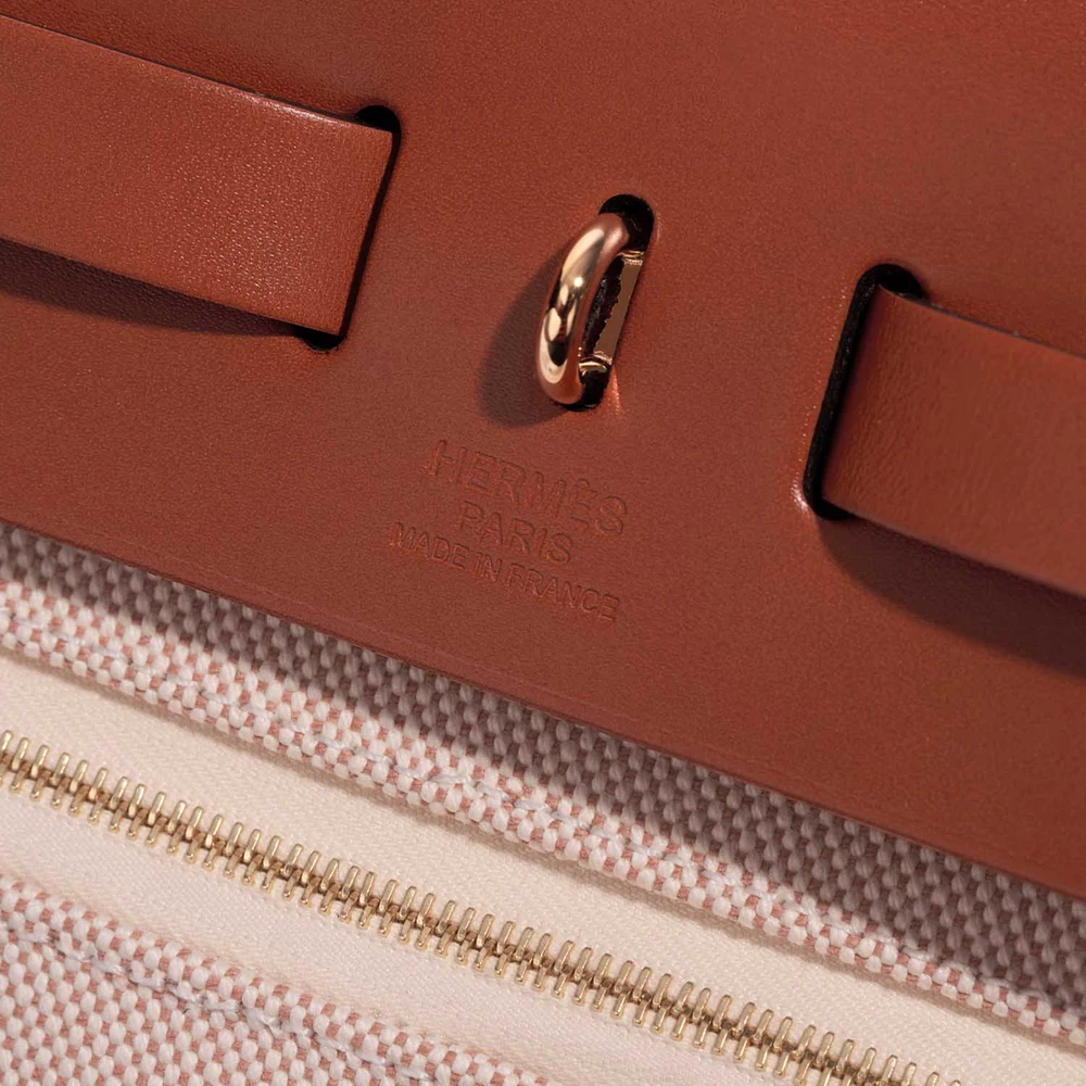 This Hermès Replica Herbag 31 features Toile and Vache Hunter leather in a warm and neutral tri-color design with Cuivre (copper), Ecru (off-white), and Beige with palladium hardware. Palladium hardware provides a modern and practical finish. Sized to hold your wallet, tablet, and small essentials, with an interchangeable pouch. Toile is durable and lightweight, with Vache Hunter leather accents. The earthy and neutral tones create a stylish and versatile look. Ideal for daily use.