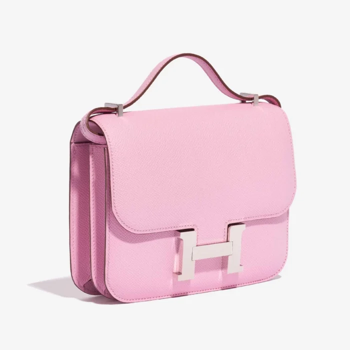 This Hermès Artisan-Grade Hermès Constance 18 features Epsom Mauve Sylvestre leather for a soft and elegant wild mallow pink in a compact size with a single flap and palladium hardware. Palladium hardware provides a modern and sleek finish. Perfectly sized to carry your phone, wallet, and more. Epsom leather is structured and resists scratches, maintaining its shape. Wear it over the shoulder or crossbody for a chic and delicate touch of color. Ideal for evenings out and special occasions.