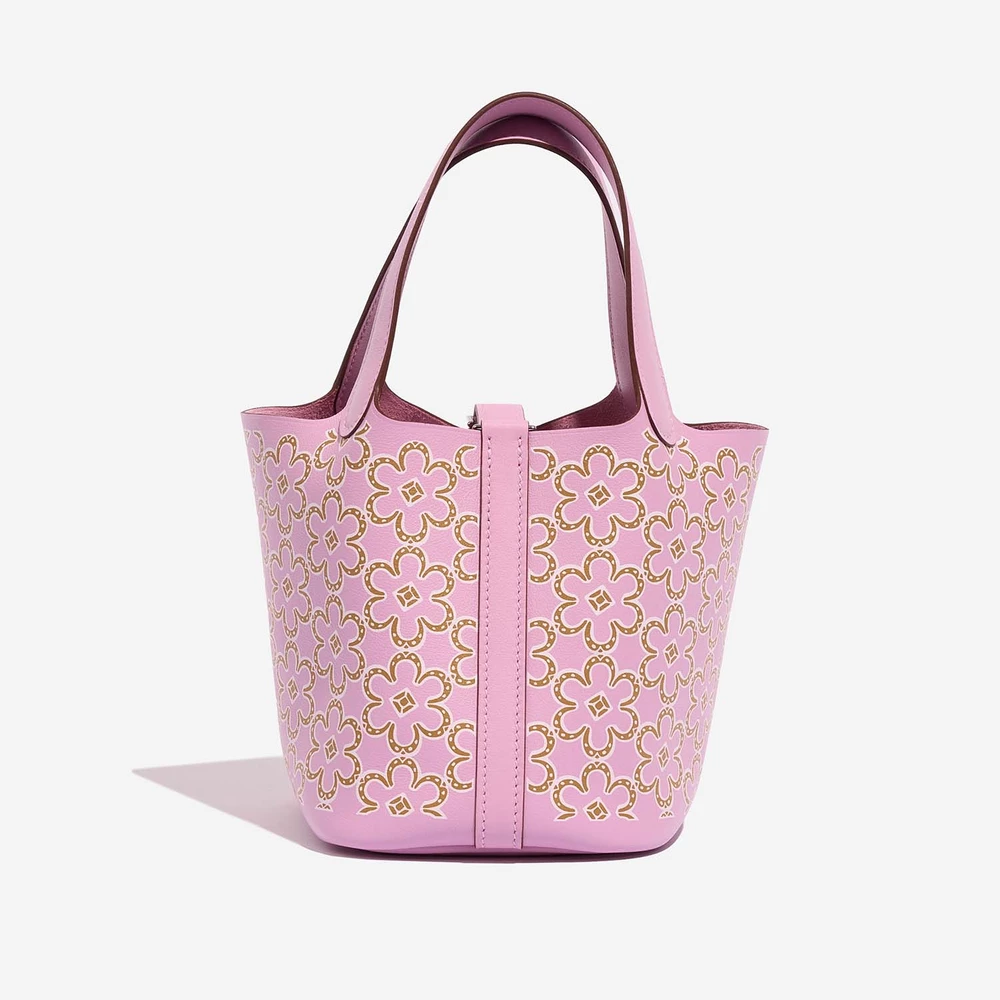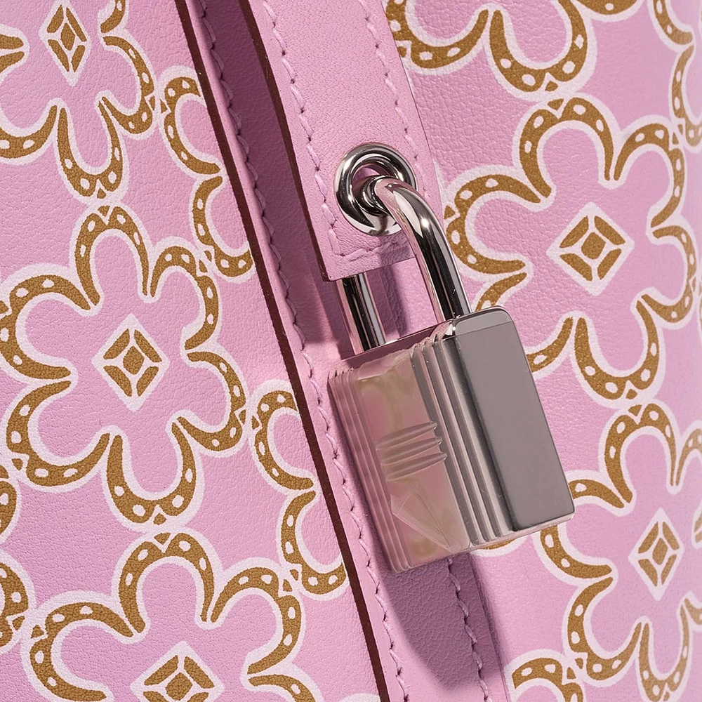 This Hermès High-End Inspired Picotin Micro Lucky Daisy features Swift Mauve Sylvestre leather for a soft and elegant muted purple with a whimsical “Lucky Daisy” design and palladium hardware. Palladium hardware provides a modern and sleek accent. Very petite size, perfect for small essentials like keys and cards. Swift leather is smooth and shows vibrant colors beautifully, enhanced by the playful daisy motif. Carry it by the top handles for an adorable and artistic touch. Ideal for adding a unique and charming accent.