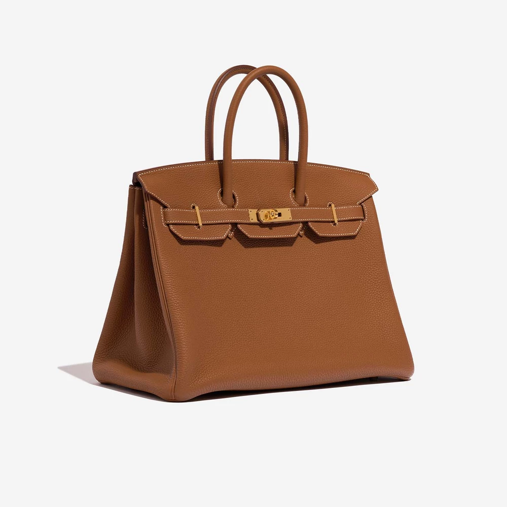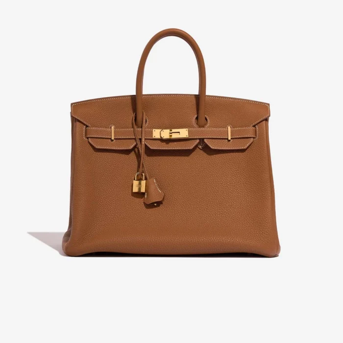 This Hermès Mirror Quality Replicas Birkin 35 features Togo Gold leather for a classic and versatile tan. Gold hardware adds a warm and classic touch. Spacious enough for daily must-haves like a tablet and cosmetics. Togo leather is durable and has a lovely, natural grain. Carry it by the top handles or on your arm for a chic and enduring look. Ideal for work and everyday sophistication.