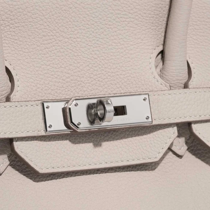 This Hermès Mirror Quality Replicas Birkin 35 features Togo Beton leather for a sophisticated and versatile light gray. Palladium hardware provides a modern and sleek finish. Spacious enough for daily must-haves like a tablet and cosmetics. Togo leather is durable and has a lovely, natural grain. Carry it by the top handles or on your arm for a chic and enduring look. Ideal for work and everyday sophistication.