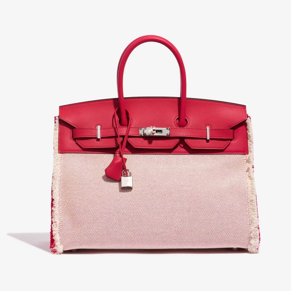This Hermès Mirror Quality Replicas Birkin 35 features a unique combination of Fray Swift leather and Canvas in Framboise (raspberry pink) with palladium hardware. Palladium hardware provides a modern and sleek finish. Very spacious, ideal for carrying more essentials with a touch of modern texture. Swift leather is smooth, while canvas adds a casual and durable element. Carry it by the top handles or on your arm for a chic and stylish statement. Ideal for travel and everyday use.