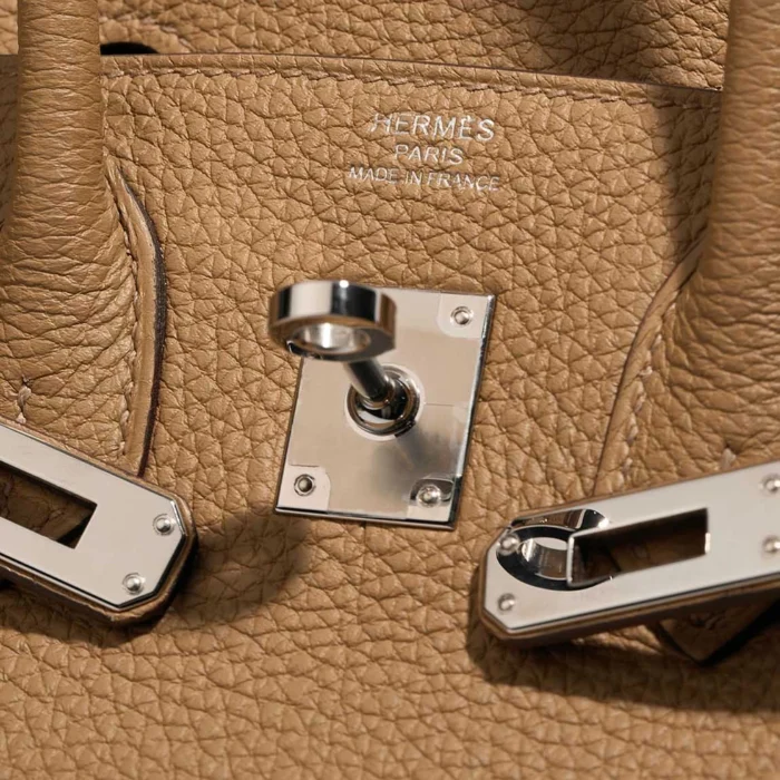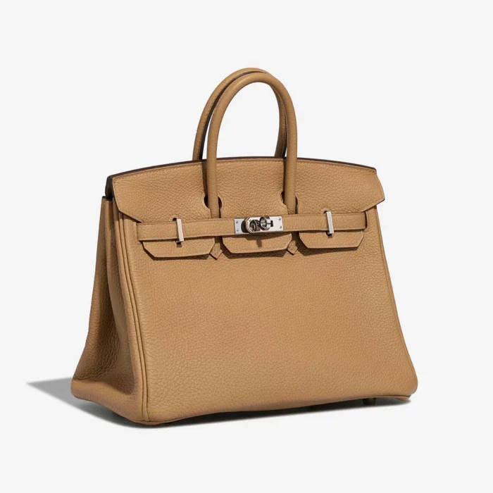 This Hermès Mirror Quality Replicas Birkin 25 features Togo Biscuit leather for a warm and neutral light brown. Palladium hardware provides a modern and sleek finish. Perfectly sized to carry your phone, wallet, and more. Togo leather is durable and has a lovely, natural grain. Carry it by the top handles or on your arm for a chic and understated elegance. Ideal for adding a touch of refined neutrality.