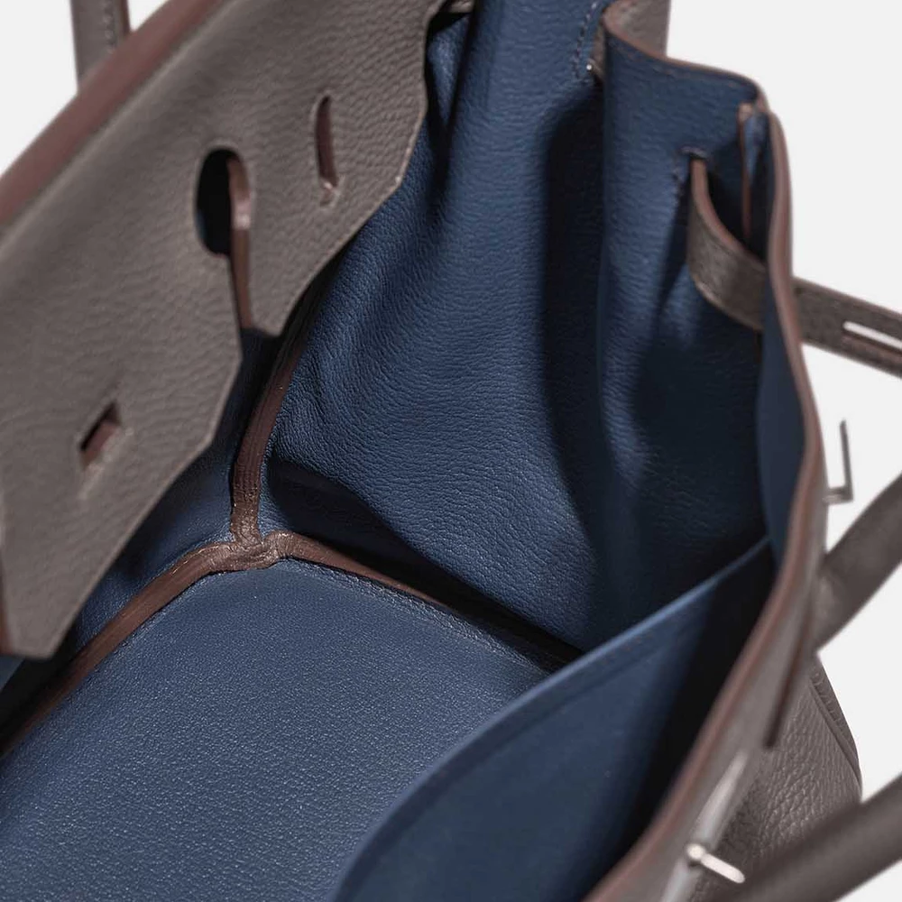 This Hermès Mirror Quality Replicas HSS (Horseshoe Stamp – special order) Birkin 35 features Taurillon Clemence leather in a sophisticated two-tone design of Etain (tin gray) and Bleu Brighton (bright blue) with palladium hardware. Palladium hardware provides a modern and sleek finish. Spacious enough for daily must-haves like a tablet and cosmetics. Taurillon Clemence leather is soft and durable for everyday use. Carry it by the top handles or on your arm for a chic and modern statement. Ideal for those who love unique color combinations.
