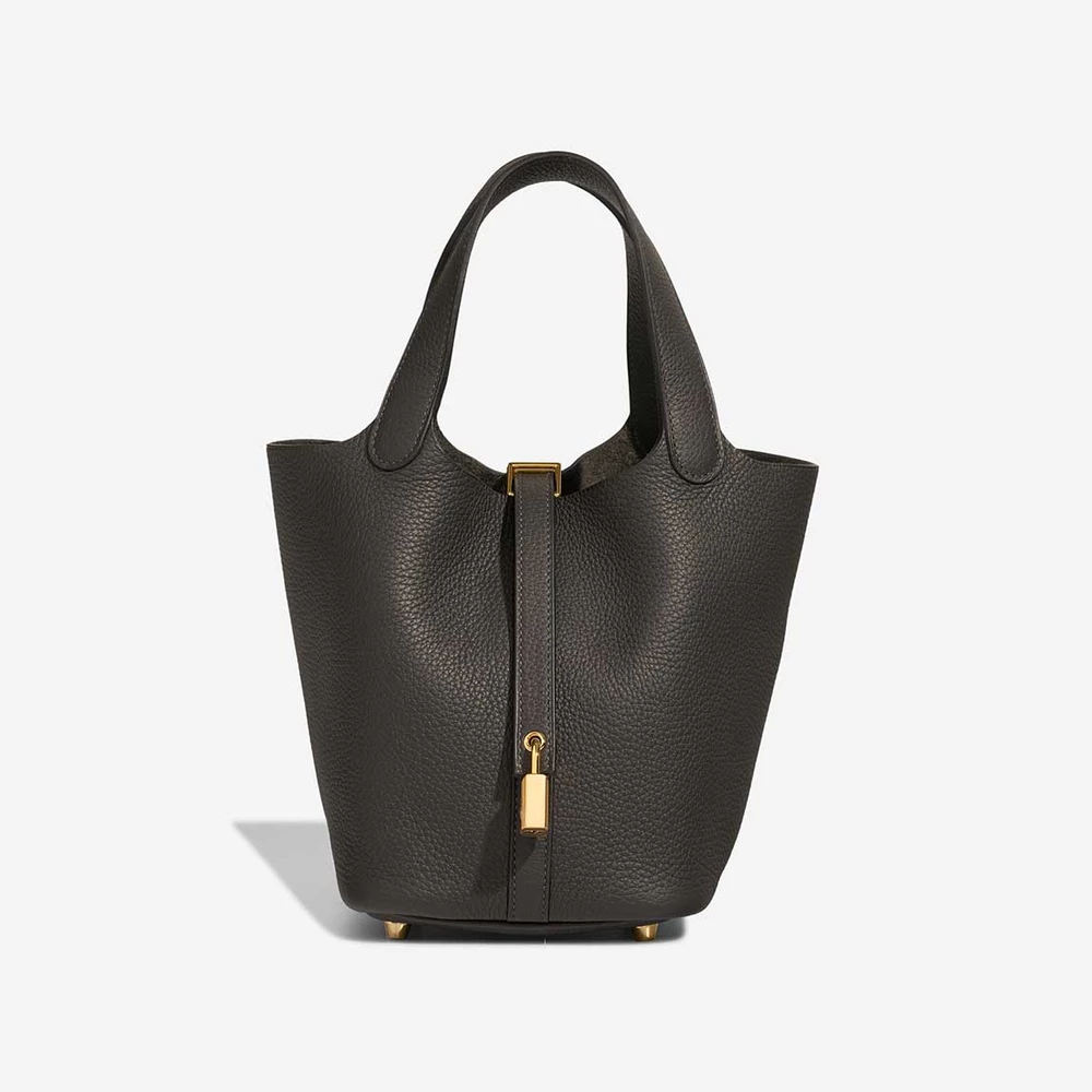This Hermès Mirror Quality Replicas Picotin 18 features Dark Bronze Clemence leather for a rich, dark metallic color. Gold hardware makes the warm colors in the leather look even better. Perfectly sized to carry your phone, wallet, and more. Clemence leather is soft and relaxed, easy to carry. Carry it by the top handles for a casual, stylish feel. Good for adding a soft metallic touch to your everyday look. Simple charm with a hint of shine.
