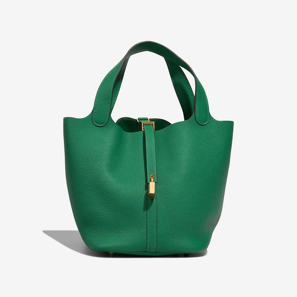 This Hermès Artisan-Grade Dupes Picotin 22 features Taurillon Clemence Vert Jade leather for a vibrant and cheerful jade green in a slightly larger size. Gold hardware adds a warm and classic touch. Sized to hold your wallet, tablet, and small essentials. Taurillon Clemence leather is soft and relaxed, easy to carry. Carry it by the top handles for an effortless, casual style with a touch of vibrant color. Ideal for everyday use.
