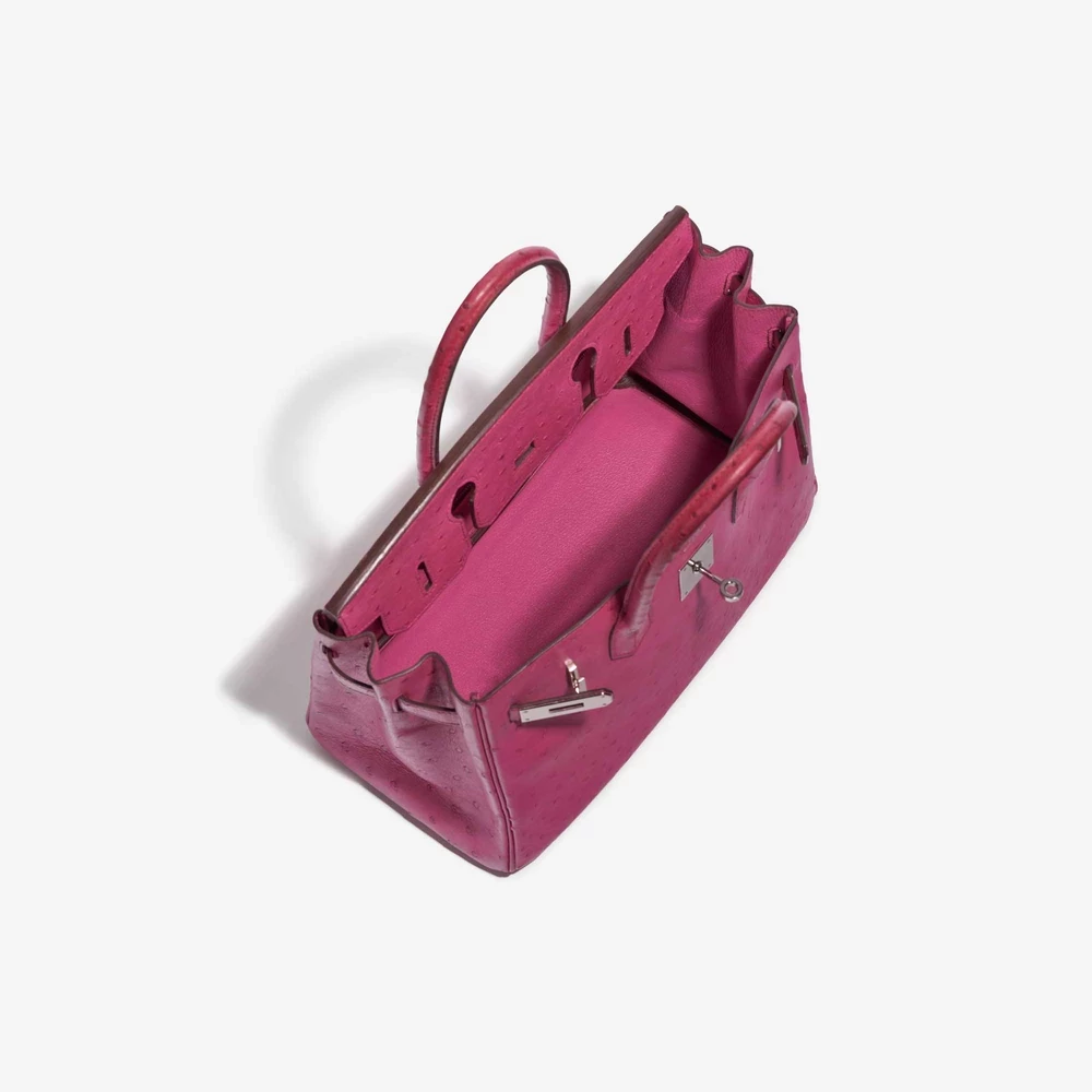 This Hermès Premium Replica Birkin 30 features luxurious Ostrich Fuchsia leather for a vibrant and intense fuchsia pink in a versatile size with palladium hardware. Palladium hardware provides a modern and sleek finish. Spacious enough for daily must-haves like a tablet and cosmetics. Ostrich leather is known for its distinctive quill pattern. Carry it by the top handles or on your arm for a chic and bold pop of color. Ideal for work and everyday elegance.