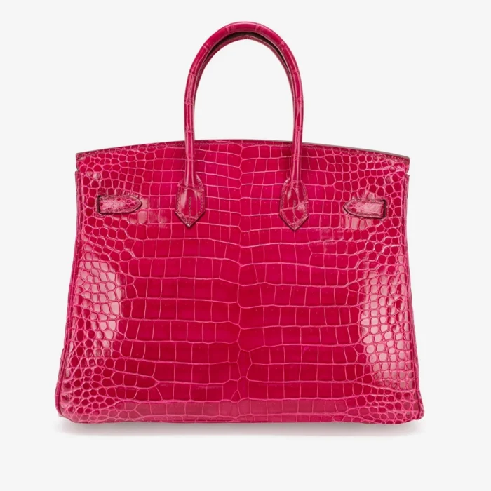 This Hermès Premium Replica Birkin 35 features luxurious Porosus Crocodile Rose Tyrien leather for a vibrant and intense fuchsia pink exotic skin in a larger size with gold hardware. Gold hardware adds a warm and classic touch. Very spacious, ideal for carrying more essentials. Porosus Crocodile is one of the most luxurious and sought-after exotic leathers, known for its symmetrical scales. Carry it by the top handles or on your arm for a bold and opulent statement. Ideal for special occasions.