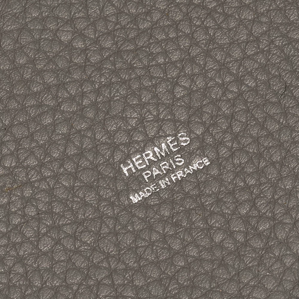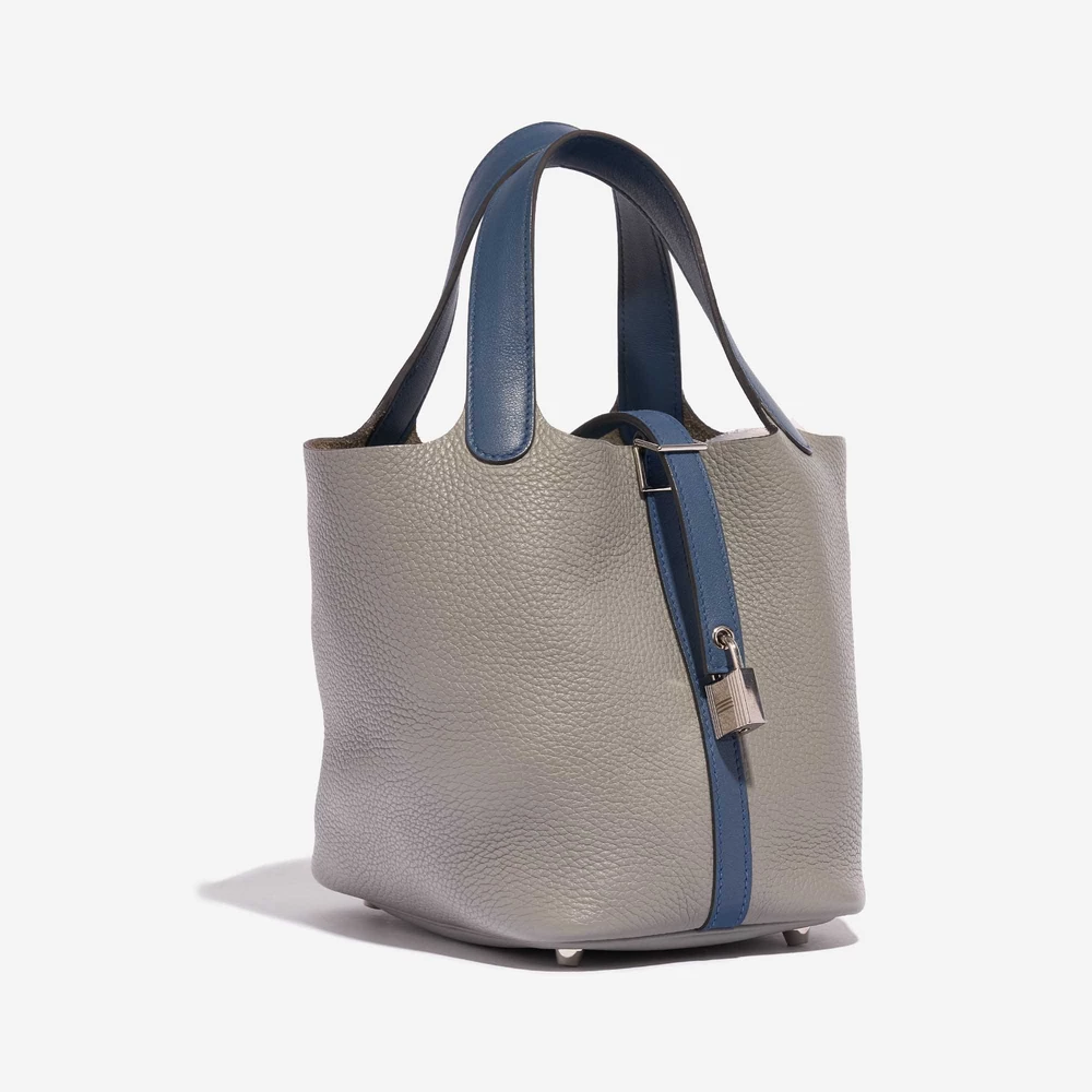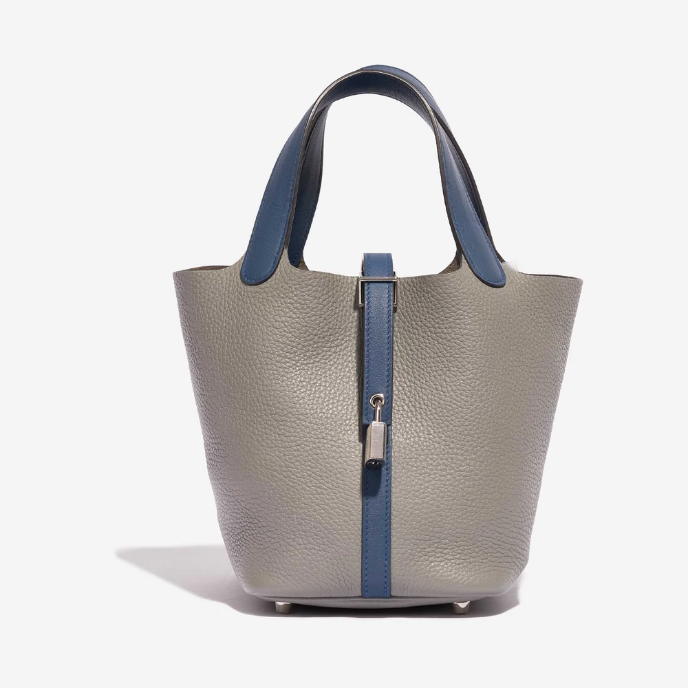 This Hermès Premium Replica Picotin 18 features a chic combination of Taurillon Clemence and Swift leather in a sophisticated two-tone design with Gris Mouette (seagull gray) Clemence body and Blue Agate (deep blue) Swift leather trim with palladium hardware. Palladium hardware provides a modern and sleek accent. Perfectly sized to carry your phone, wallet, and more. Clemence leather offers a soft and relaxed feel, while Swift leather adds a smooth and refined touch. Carry it by the top handles for an effortless, casual style with a touch of refined color. Ideal for everyday use.