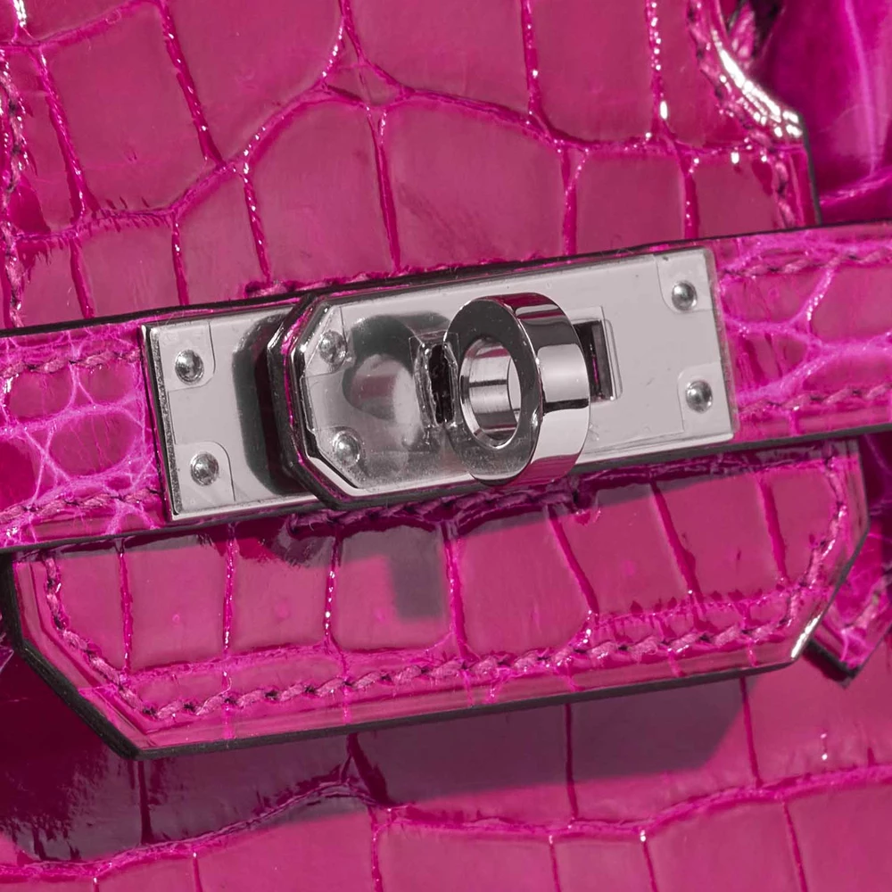 This Hermès Best Replica Birkin 25 features luxurious Niloticus Crocodile Rose Pourpre leather for a rich and vibrant deep pink-purple exotic skin in a petite size with palladium hardware. Palladium hardware provides a modern and sleek finish. Perfectly sized to carry your phone, wallet, and more. Niloticus Crocodile leather is highly prized for its beautiful scales. Carry it by the top handles or on your arm for a chic and opulent statement. Ideal for special occasions.