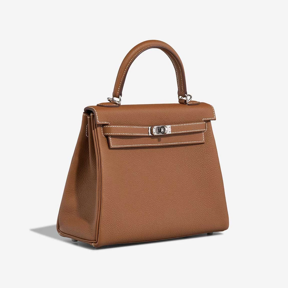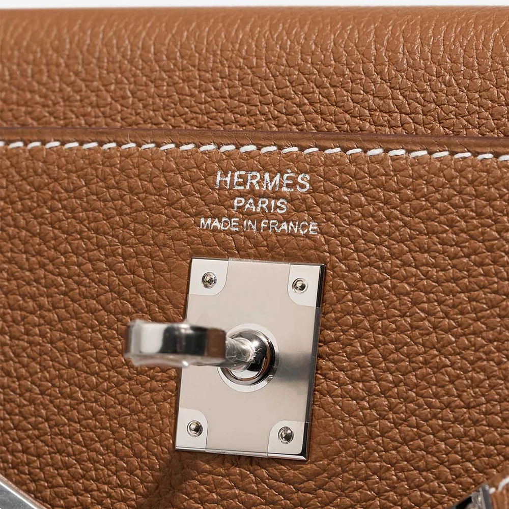 This Hermès Mirror Quality Replicas Kelly 25 features Gold Togo leather for a classic tan color. Palladium hardware gives a modern and quiet finish. Perfectly sized to carry your phone, wallet, and more. Togo leather is strong and gets a nice look over time. Wear it with both casual and dressy clothes for many different looks. Perfect for everyday class and special times. A basic piece that always looks good.
